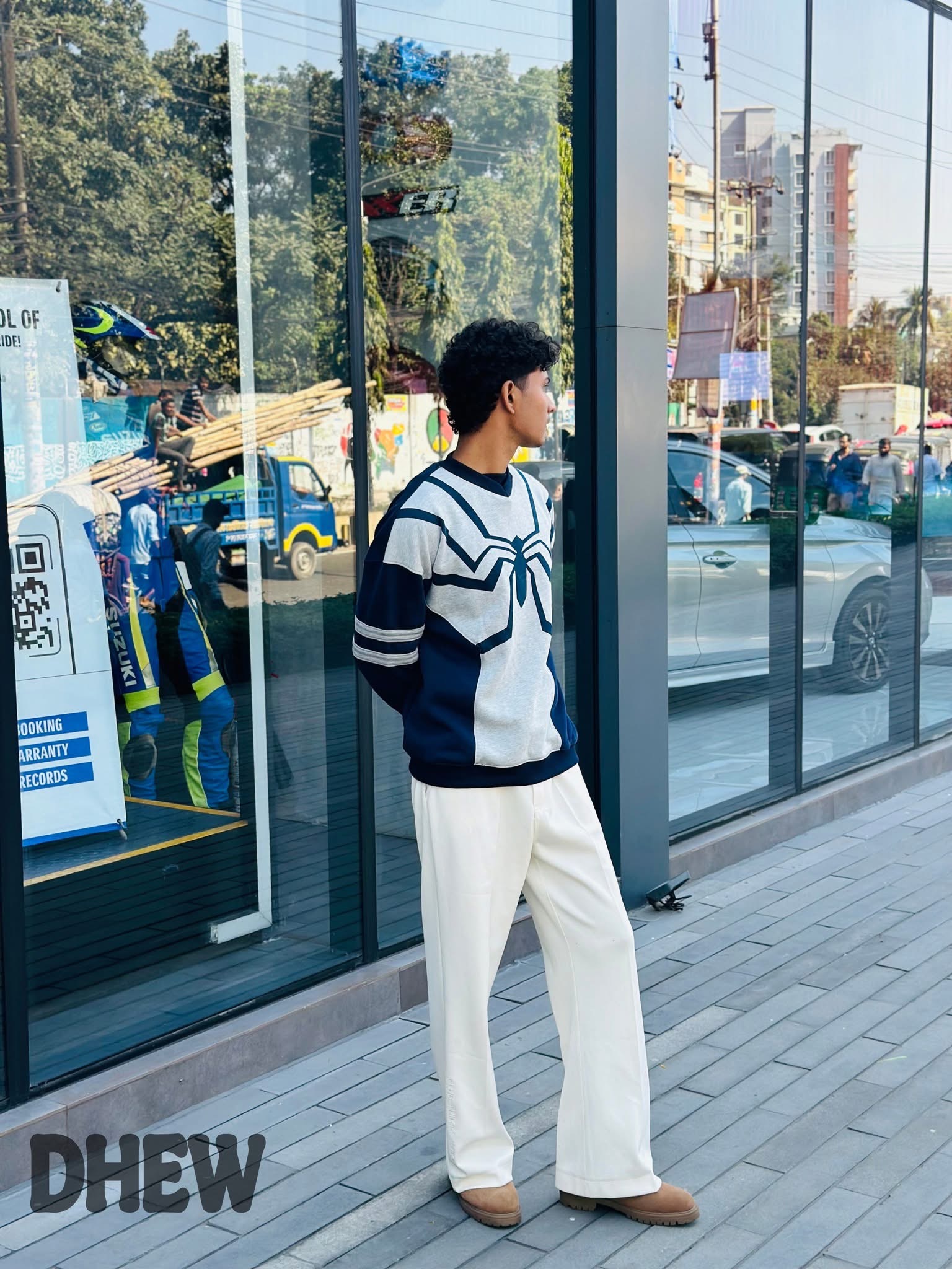 The Spider Drop-Shoulder piece delivers a strong blend of comfort and street-style attitude. The drop-shoulder cut gives it a relaxed, oversized silhouette that feels modern without looking sloppy. It drapes well on the body, making it easy to layer or wear on its own.